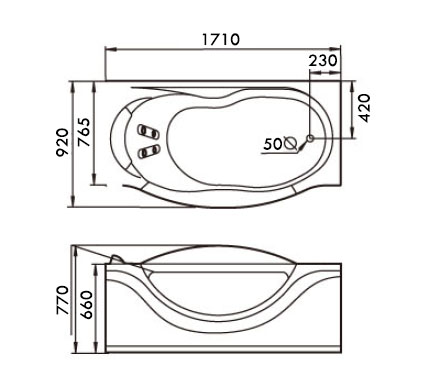 Поверхность изделия приятна на ощупь. 100% литьевой акрил препятствует размножению вредных бактерий. Такая сантехника проста в уходе. При небольших загрязнениях достаточно ополоснуть ванну теплой водой и протереть мягкой тканью. Чтобы сохранить первоначальный белый цвет ванны, не применяйте абразивные средства.