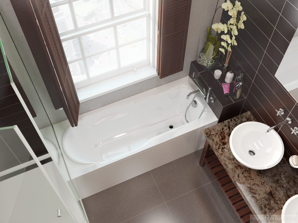 Поверхность изделия приятна на ощупь. 100% литьевой акрил препятствует размножению вредных бактерий. Такая сантехника проста в уходе. При небольших загрязнениях достаточно ополоснуть ванну теплой водой и протереть мягкой тканью. Чтобы сохранить первоначальный белый цвет ванны, не применяйте абразивные средства.