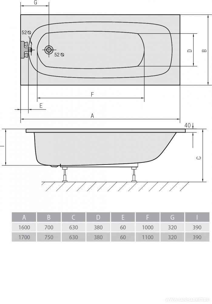 LAURA 170x75 ALPEN Ванна