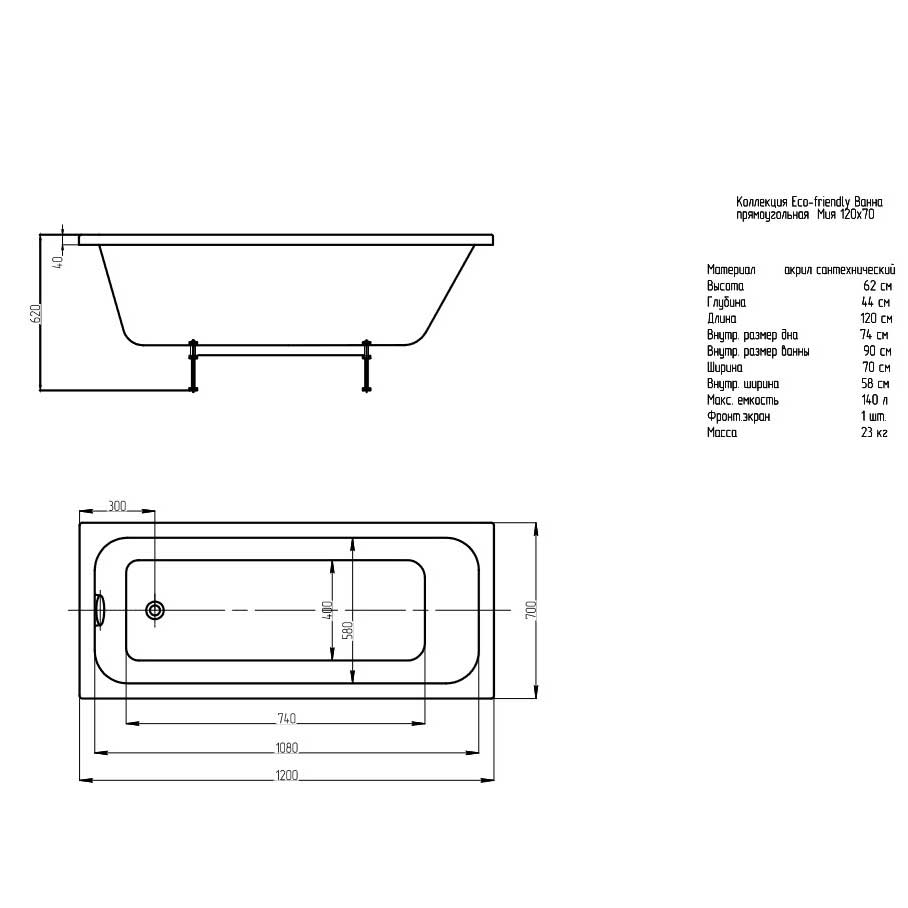 Ванна акриловая АКВАТЕК Мия 120x70 MIY120-0000001 (без гидромассажа)