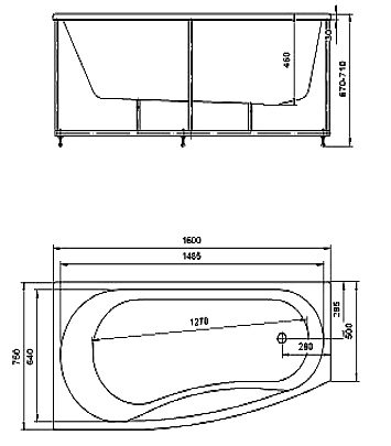 Ванна акриловая АКВАТЕК Пандора 160х75 левая