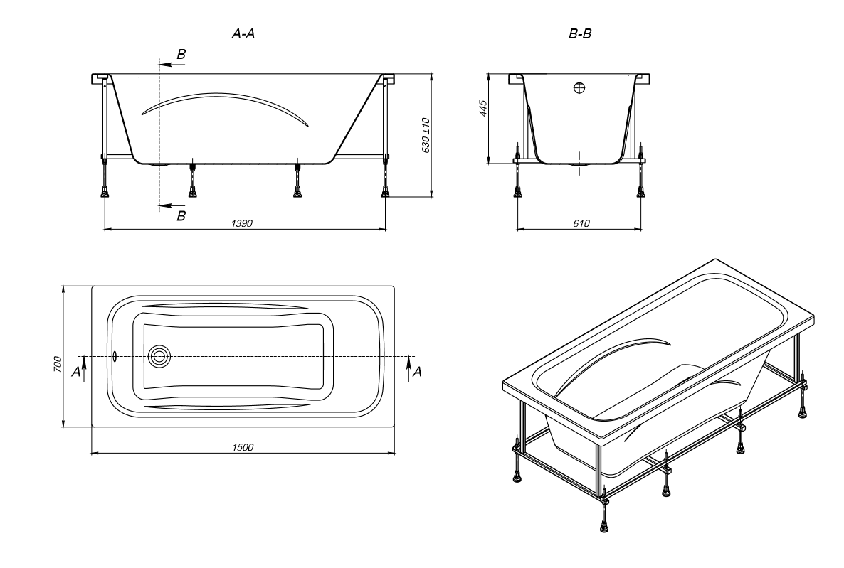Поверхность изделия приятна на ощупь. 100% литьевой акрил препятствует размножению вредных бактерий. Такая сантехника проста в уходе. При небольших загрязнениях достаточно ополоснуть ванну теплой водой и протереть мягкой тканью. Чтобы сохранить первоначальный белый цвет ванны, не применяйте абразивные средства.