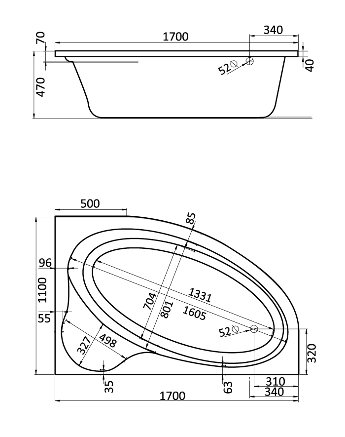 Ванна акриловая Santek Эдера 170*110*47 правосторонняя