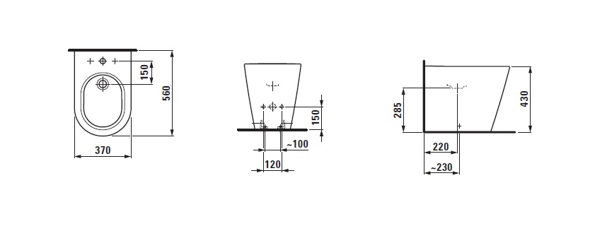 K BY LAUFEN Напольное биде (370x545х430 мм), одно отв. для смес., цвет белый