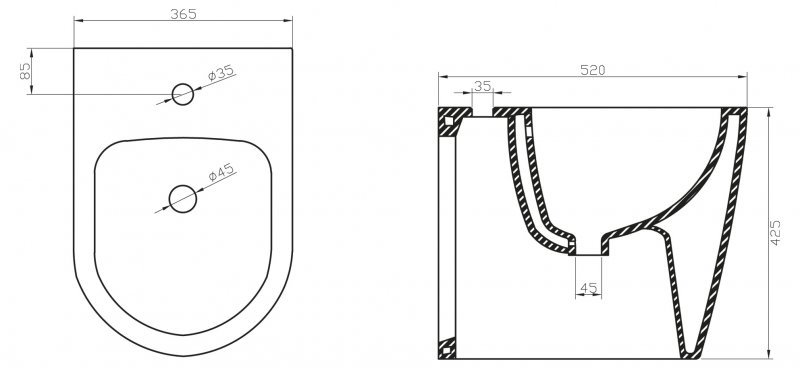 Напольное биде BelBagno Marino 36,5*52