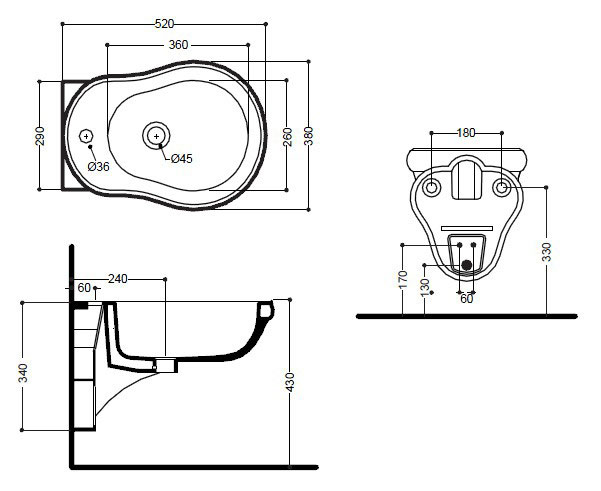 Подвесное биде Kerasan Retro 38*52