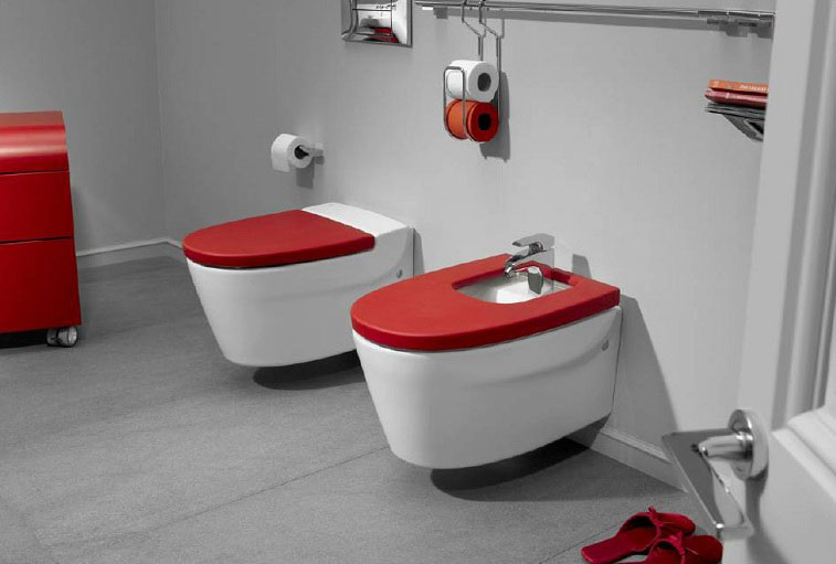 Подвесное биде Roca Khroma 39*61 с красной крышкой микролифт