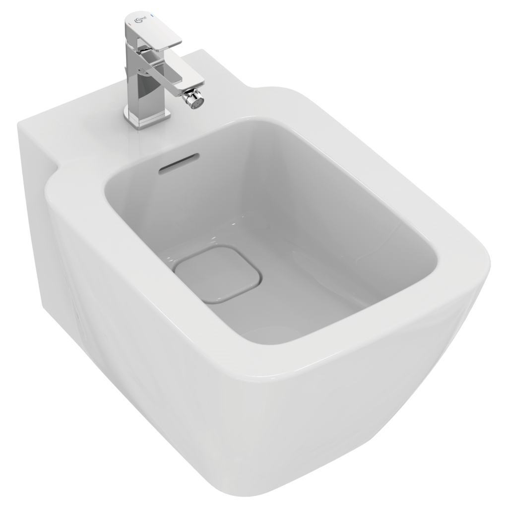 T297101 STRADA II Подвесное биде, с отверстием перелива, с керамической накладкой слива (T854601), с крепежом для полностью скрытого монтажа