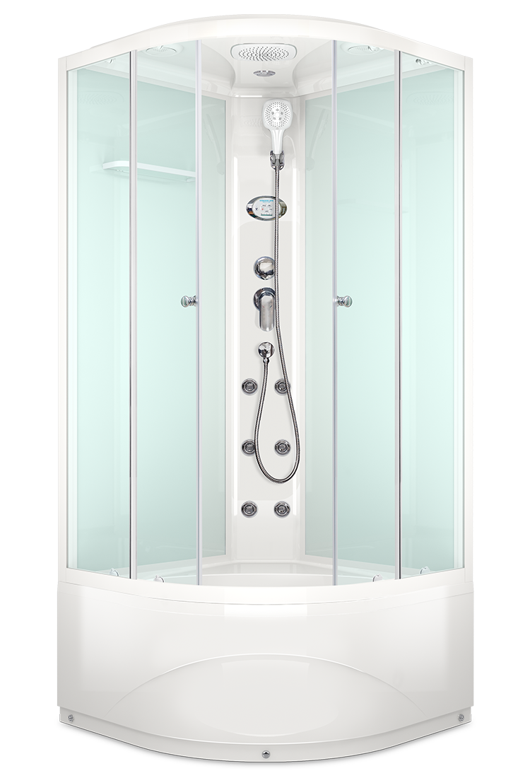 Душевая кабина DOMANI-Spa Delight Slim 99 high, кнопочный блок управления, вертикальный гидромассаж, светлые стенки, матовые стекла, размер 90*90*218см