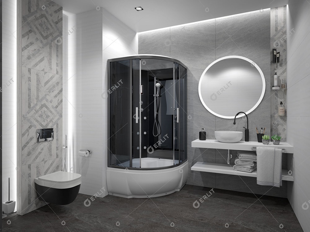 Душевая кабина Erlit 90 четверть круга проста и удобна в использовании. Она герметична, не позволяет воде попасть на пол. Ее можно установить в помещении с любой отделкой. Душевая кабина представляет собой готовое решение: стойки, смесители, лейка для душа идут в комплекте. После установки устройства удается уменьшить расход воды. Обратите внимание: размер кабины рассчитывается по внешним элементам. Внутреннее пространство будет меньше. акрил — основной материал сантехнического изделия — отличается надежностью, презентабельным внешним видом. цвет душевой кабины станет беспроигрышным вариантом для санузла, выполненном в любом стилевом решении (от классики до модерна).