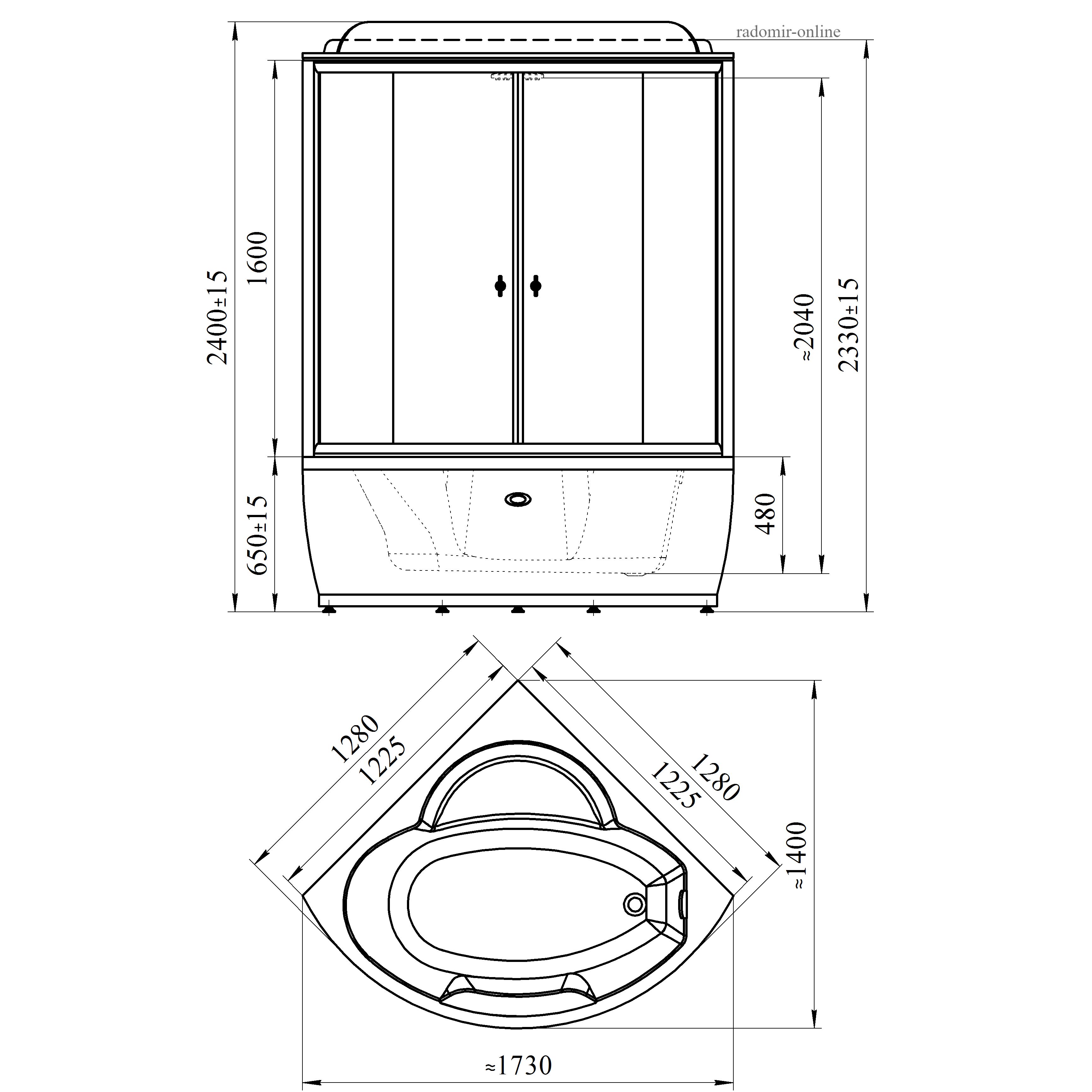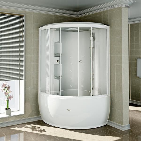 Душевая кабина Radomir 155 четверть круга проста и удобна в использовании. Она герметична, не позволяет воде попасть на пол. Ее можно установить в помещении с любой отделкой. Душевая кабина представляет собой готовое решение: стойки, смесители, лейка для душа идут в комплекте. После установки устройства удается уменьшить расход воды.