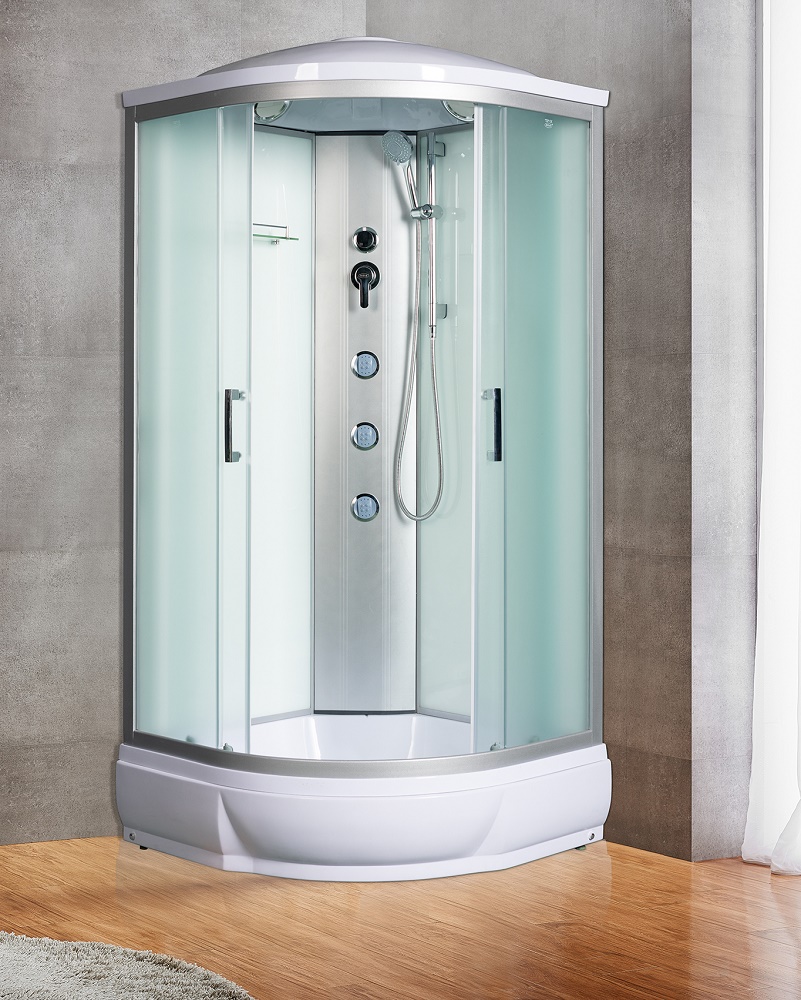 Душевая кабина River 90 четверть круга проста и удобна в использовании. Она герметична, не позволяет воде попасть на пол. Ее можно установить в помещении с любой отделкой. Душевая кабина представляет собой готовое решение: стойки, смесители, лейка для душа идут в комплекте. После установки устройства удается уменьшить расход воды. Обратите внимание: размер кабины рассчитывается по внешним элементам. Внутреннее пространство будет меньше. экструзионный акрил (ПММА/АБС) — основной материал сантехнического изделия — отличается надежностью, презентабельным внешним видом. матовый хром цвет душевой кабины станет беспроигрышным вариантом для санузла, выполненном в любом стилевом решении (от классики до модерна).