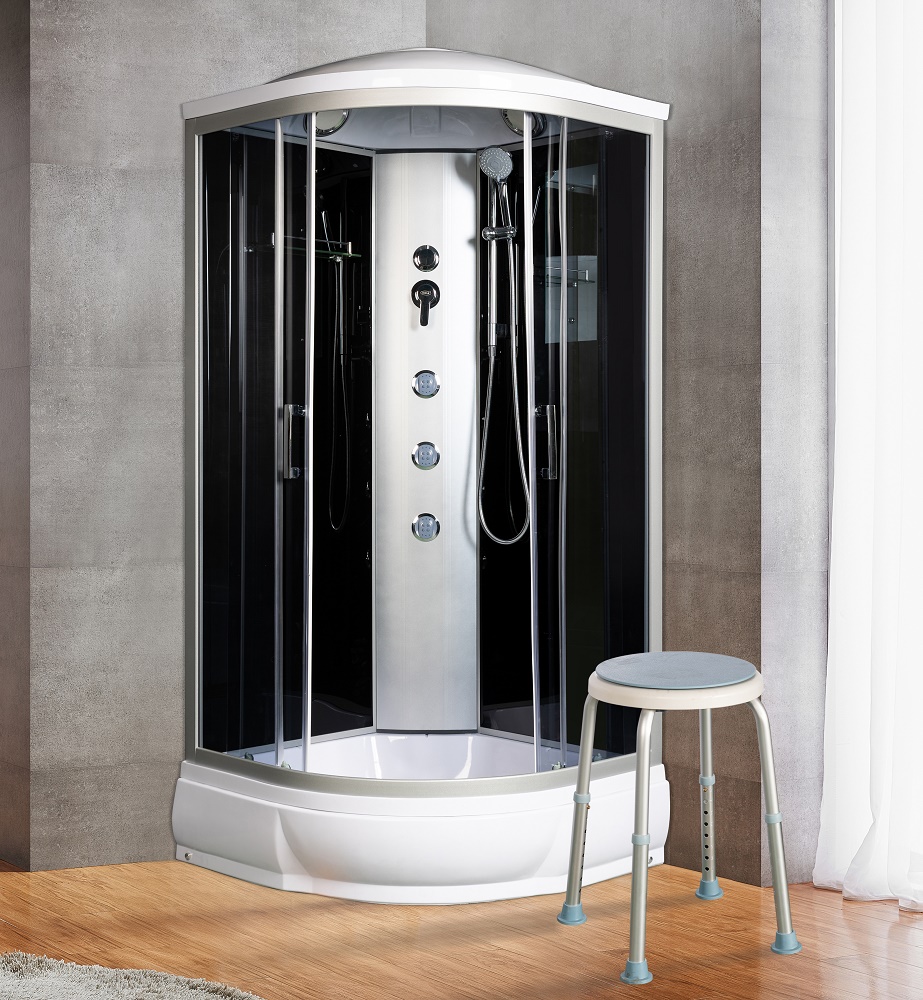 Душевая кабина River 90 четверть круга проста и удобна в использовании. Она герметична, не позволяет воде попасть на пол. Ее можно установить в помещении с любой отделкой. Душевая кабина представляет собой готовое решение: стойки, смесители, лейка для душа идут в комплекте. После установки устройства удается уменьшить расход воды. Обратите внимание: размер кабины рассчитывается по внешним элементам. Внутреннее пространство будет меньше. экструзионный акрил (ПММА/АБС) — основной материал сантехнического изделия — отличается надежностью, презентабельным внешним видом. матовый хром цвет душевой кабины станет беспроигрышным вариантом для санузла, выполненном в любом стилевом решении (от классики до модерна).