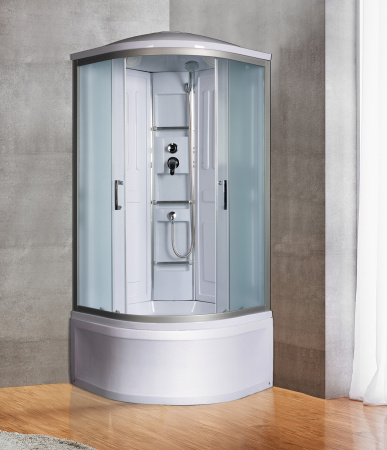 Душевая кабина River 90 четверть круга проста и удобна в использовании. Она герметична, не позволяет воде попасть на пол. Ее можно установить в помещении с любой отделкой. Душевая кабина представляет собой готовое решение: стойки, смесители, лейка для душа идут в комплекте. После установки устройства удается уменьшить расход воды. Обратите внимание: размер кабины рассчитывается по внешним элементам. Внутреннее пространство будет меньше. экструзионный акрил (ПММА/АБС) — основной материал сантехнического изделия — отличается надежностью, презентабельным внешним видом. матовый хром цвет душевой кабины станет беспроигрышным вариантом для санузла, выполненном в любом стилевом решении (от классики до модерна).