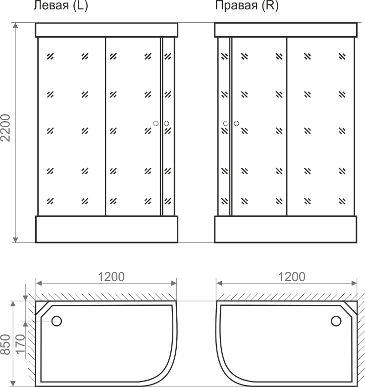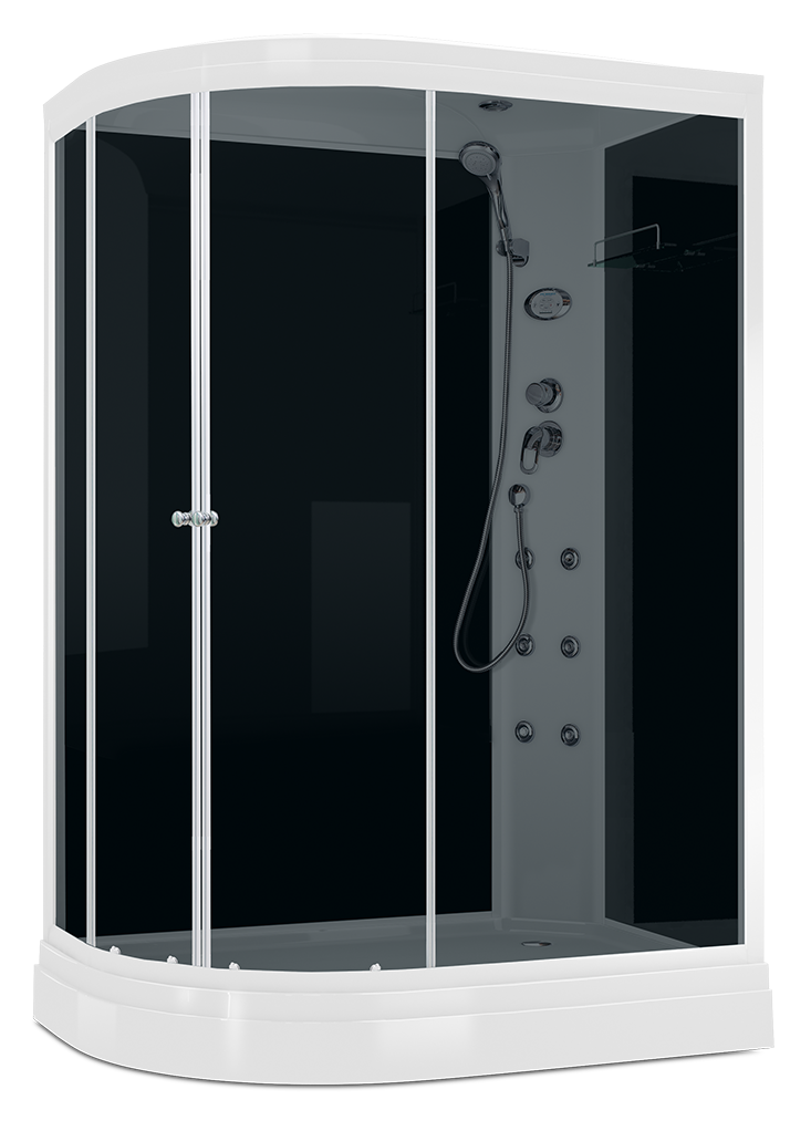 Душевая кабина DOMANI-Spa Delight Slim 128 Правая/R, кнопочный блок управления, вертикальный гидромассаж, черные стенки, размер 120*85*218см