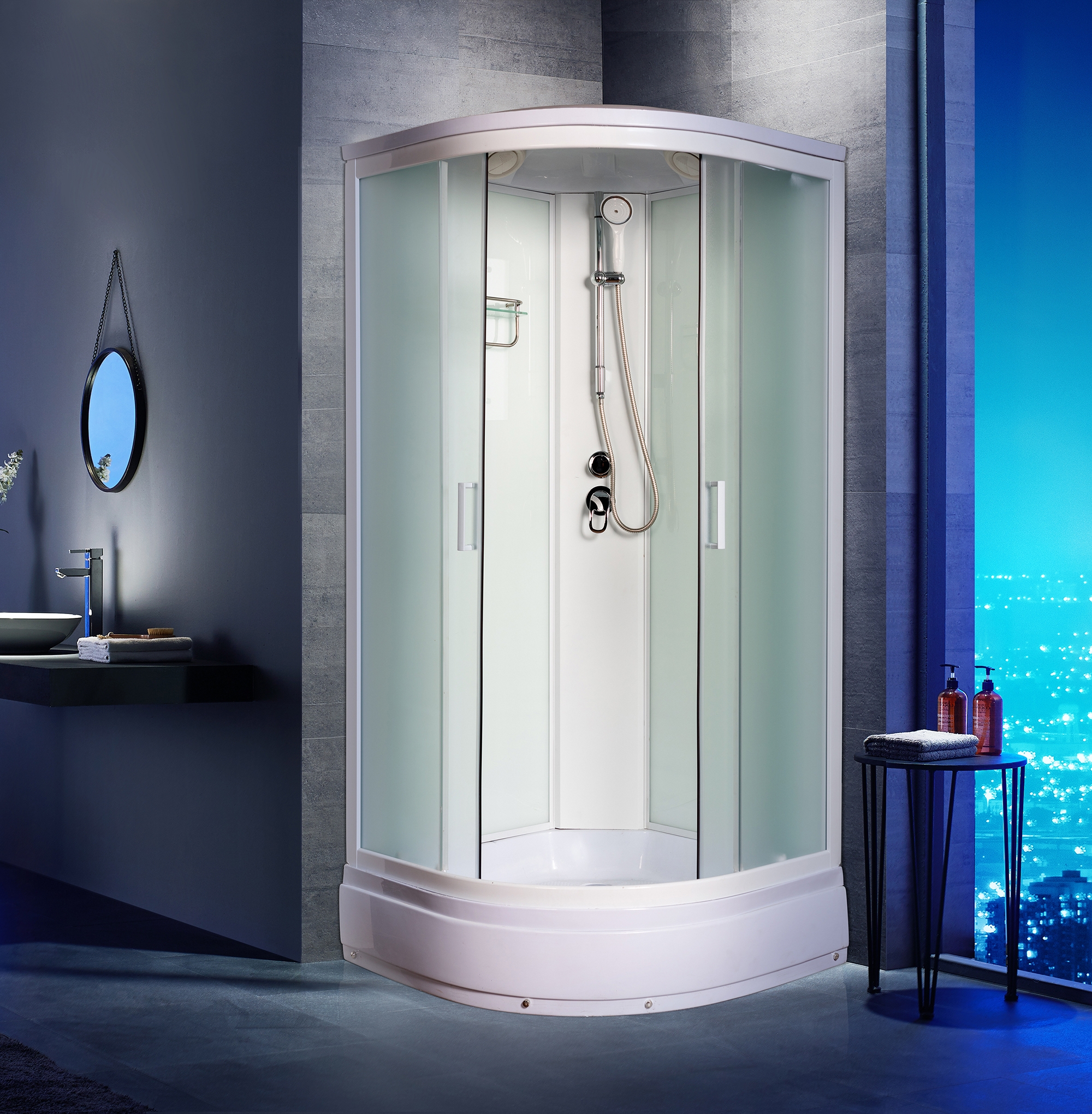 Душевая кабина ВМ-8625 100 100 215, средний поддон, зад. стенка белая, перед. стекла матовые