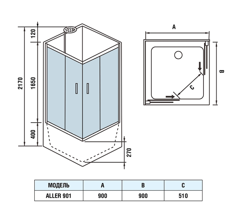 Душевая кабина WeltWasser WW500 Premium Aller 901 (90*90*217) без крыши