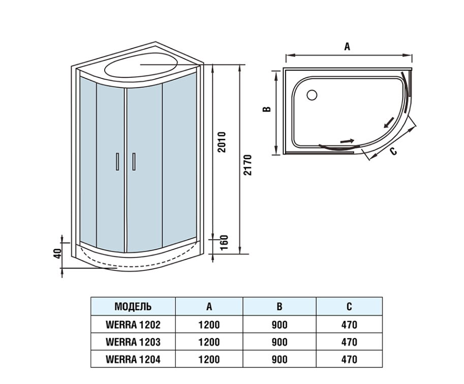 Душевая кабина WeltWasser WW500 Premium Werra 1204 L (120*90*217)
