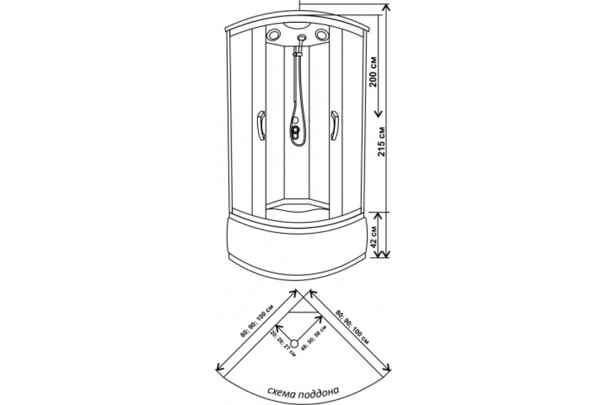 ВМ-8811Е (90*90*215) высокий поддон, зад. стенка черная ,перед. Стекла тонированные.