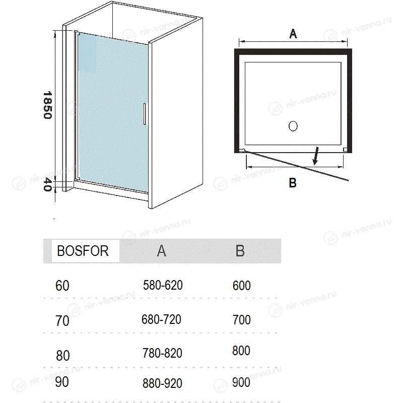 Душевая дверь в нишу River Bosfor 90 МТ L/R без поддона