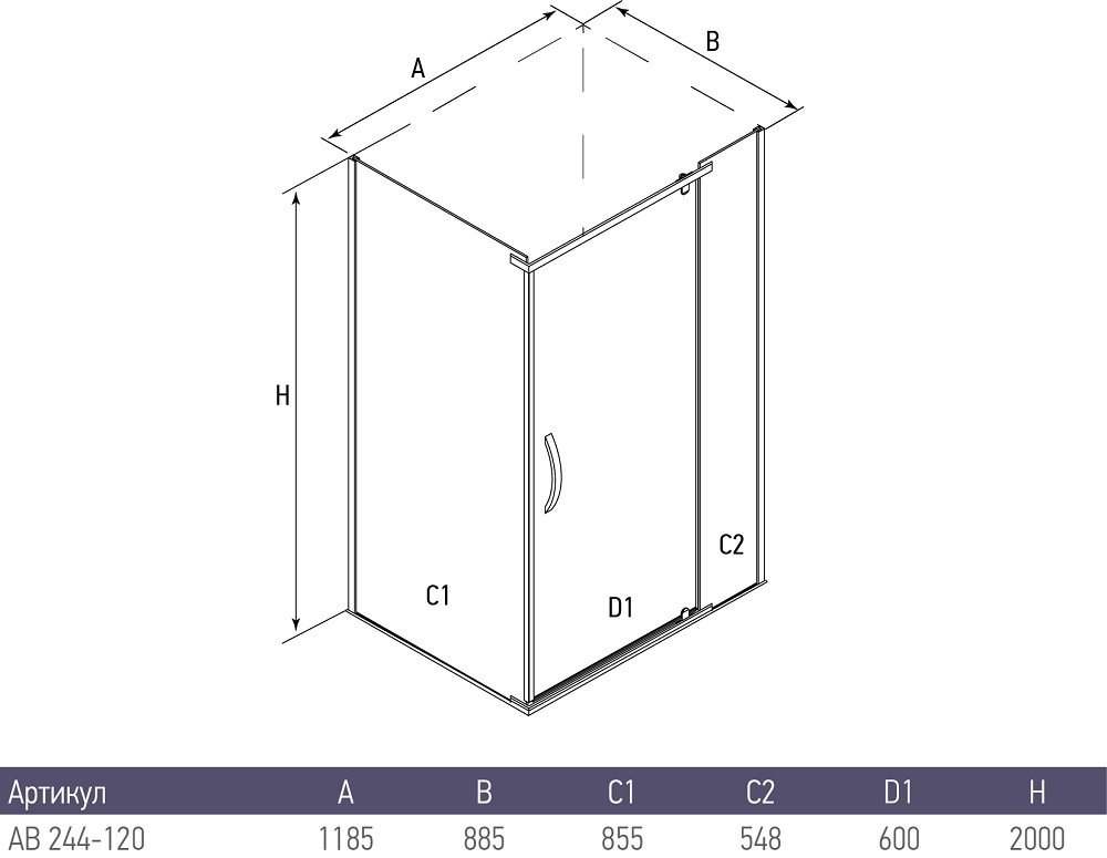 Душевой уголок Alex Baitler AB 244-120 L/R без поддона