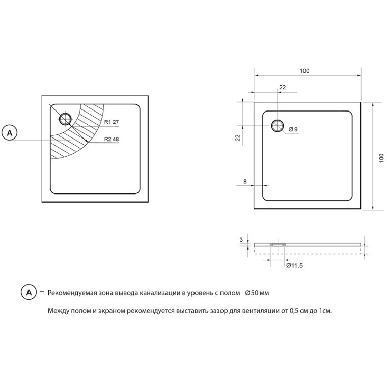 Душевой поддон Aquanet 100 квадратная может стать частью душевой кабины (уголка) или иметь значение самостоятельного санитарно-технического оборудования. Выбирая поддон, учитывайте рост и вес всех тех, кто будет им пользоваться. Пространство для принятия душа должно быть комфортным: возможность свободно поднять руки, согнуть колени, не упираясь в стены.