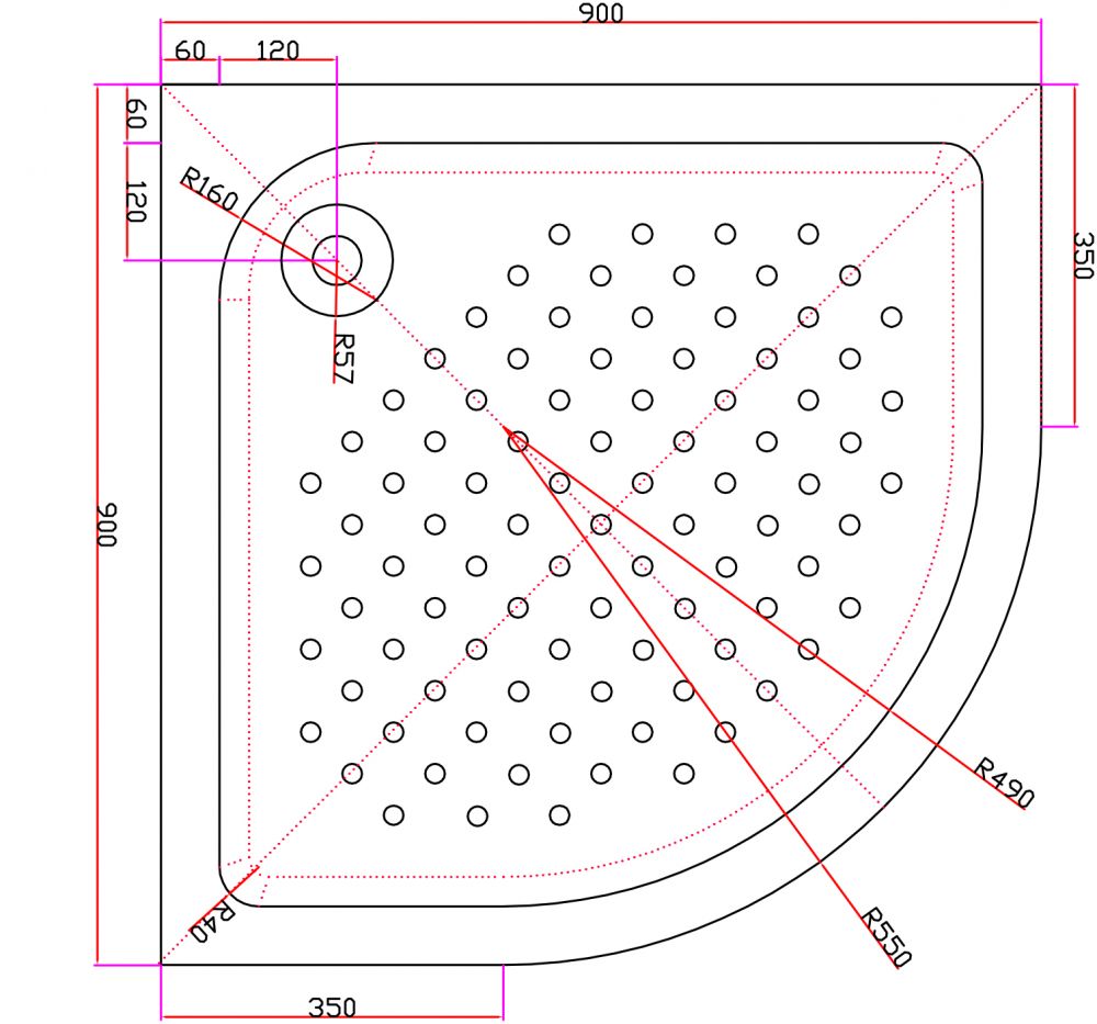 Душевой поддон Cezares 90*90*15 четверть круга