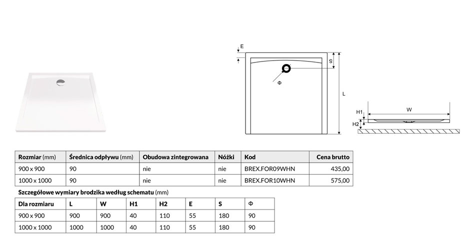 Душевой поддон Excellent Forma 90*90*4