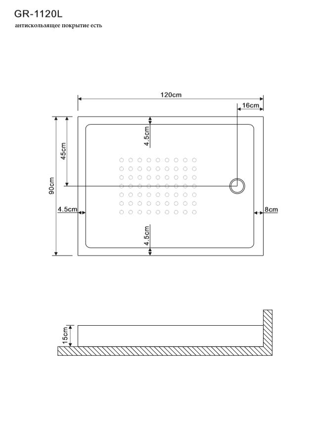 Душевой поддон Grossman 120*90*15 прямоугольный L для GR-1120L