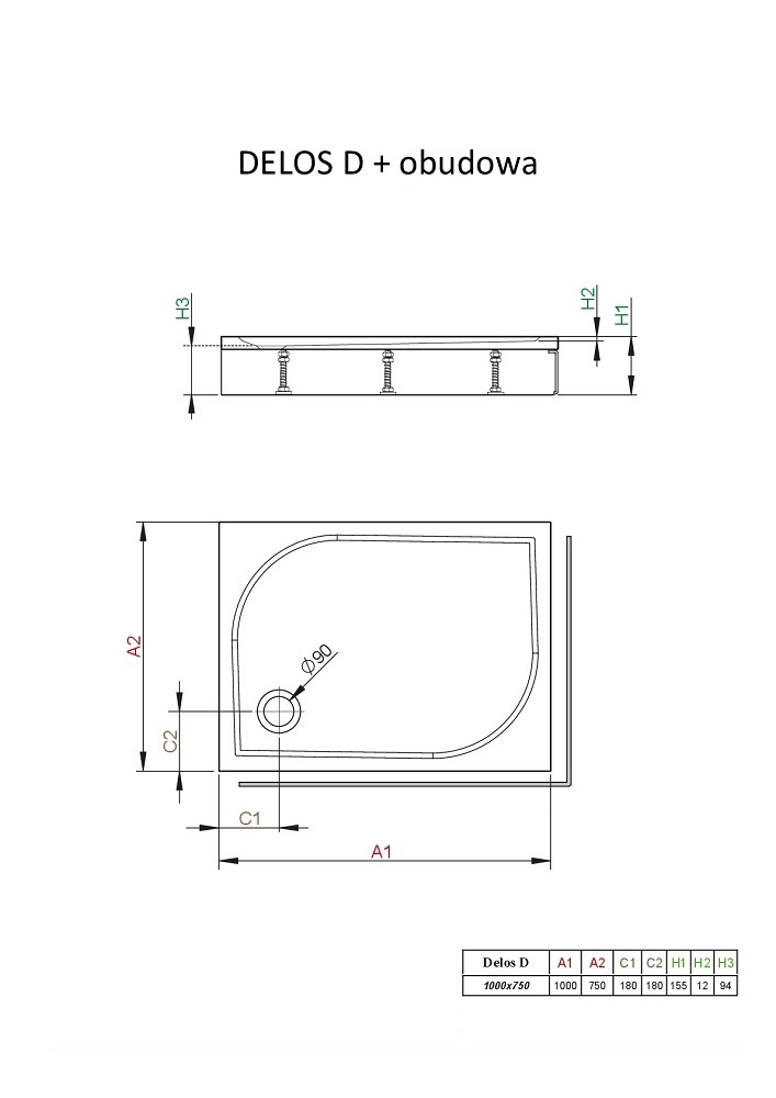 Душевой поддон Radaway Delos D 100*75*15,5 L со съемной панелью