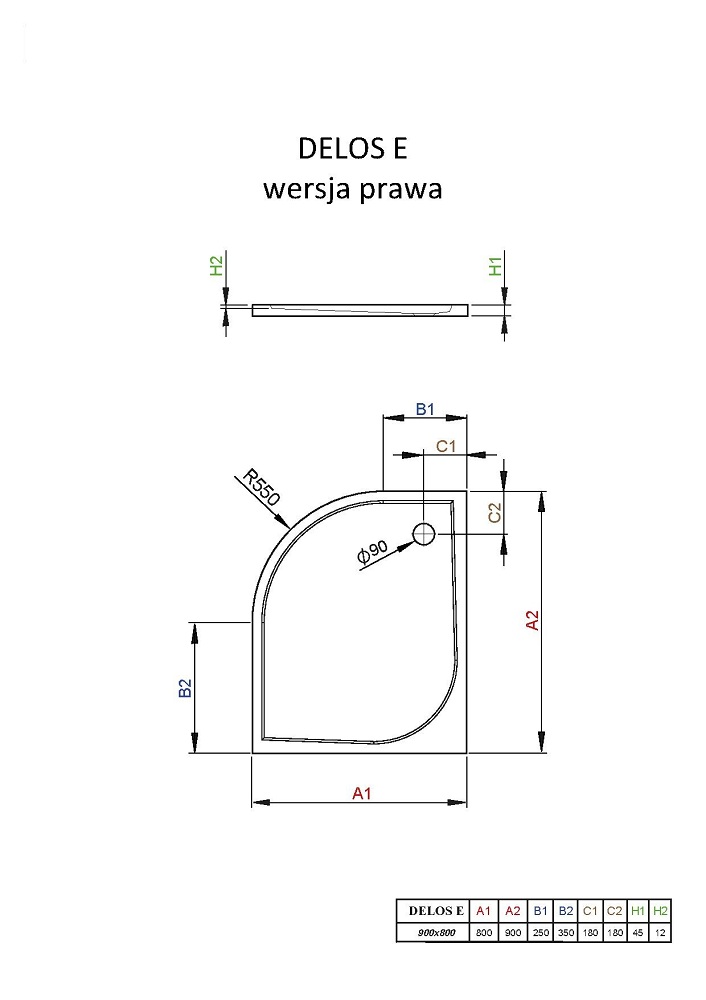Душевой поддон Radaway Delos E 90*80*4,5 R