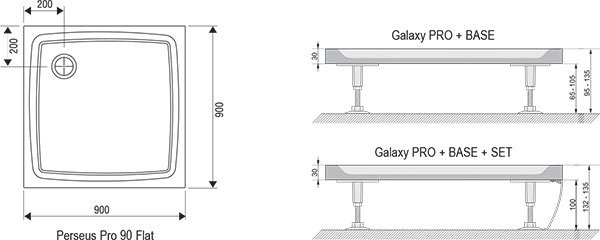 Душевой поддон Ravak Galaxy Pro Flat Perseus Pro Flat 90*90*3