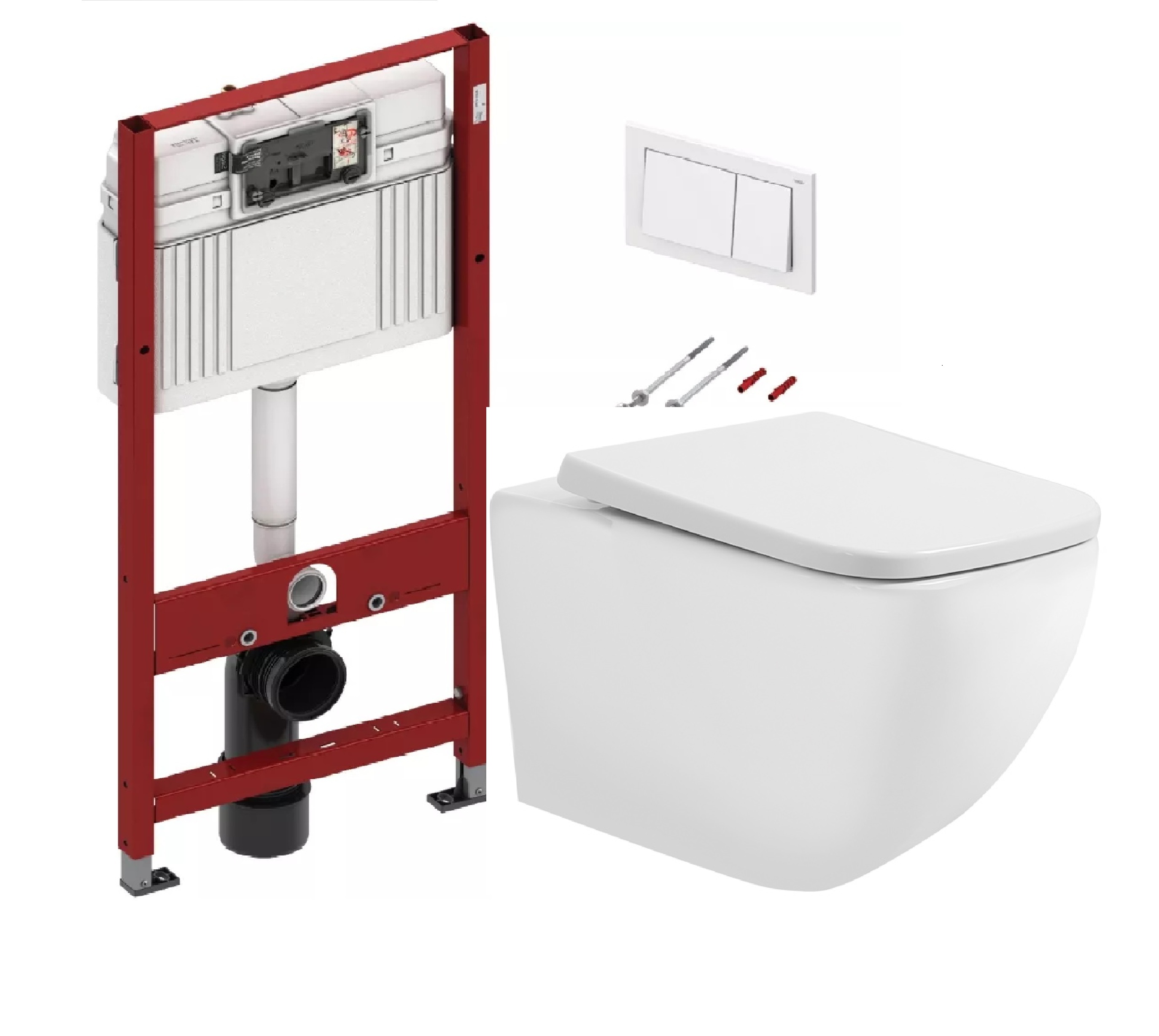 9400000WC КОМПЛЕКТ ИНСТАЛЛЯЦИИ 4 В 1 С ПАНЕЛЬЮ CМЫВА ТЕСЕBASE, ЦВЕТ БЕЛЫЙ + С унитазом безободковым ART&MAX MAXIMA AM010CHR