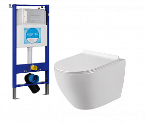 Комплект инсталляции Aquatek INS-0000012 +Подвесной унитаз Sole Pandora 2 37*47,5 безободковый с крышкой-сиденьем микролифт
