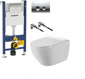 Комплект инсталляции для унитазов Geberit Duofix Delta 458.124.21.1 3 в 1 с кнопкой смыва+унитаз Sole Pandora 2 37*47,5 безободковый с крышкой-сиденьем микролифт