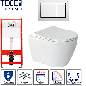 Комплект с панелью смыва ТЕСЕnow и унитазом TECE V04 54 см белая, 9400013.WC1 (9 400 013.WC1)