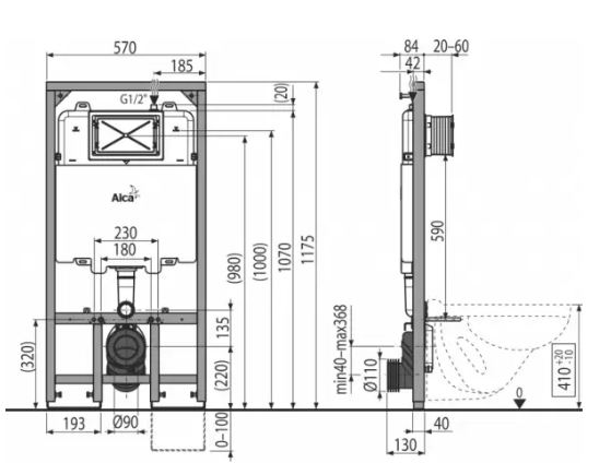 инсталляция для сухой установки Sadromodul Slim (для гипсокартона или Slimbox) АМ1101/1200