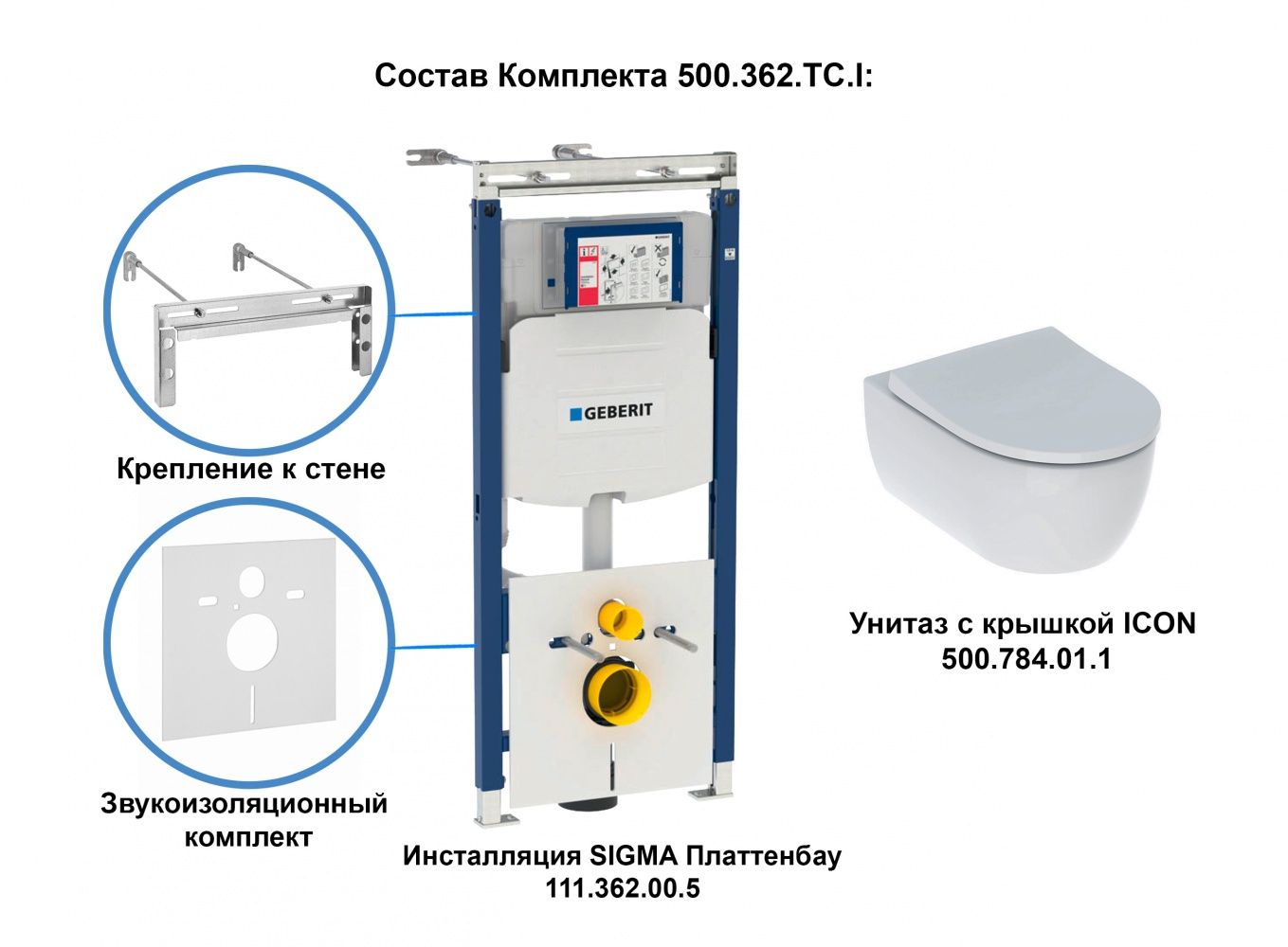 Комплект инсталляции Geberit iCon, 500.362.TC.I (унитаз, инсталяция)
