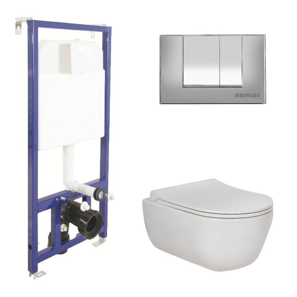 Комплект инсталляции Berges Novum клавиша смыва S3 глянцевый хром унитаз Ego Rimless