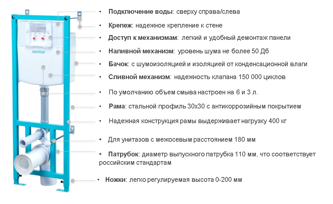 Инсталляции от ведущих производителей сантехнических изделий – универсальное решение для ванных комнат, туалетов как бытовых, так и офисных помещений. Простые в монтаже и прочные конструкции легко устанавливаются на любые типы стен. Монтажные рамы для раковин, инсталляции для подвесных унитазов, инсталляции с бачком обладают сертификатами качества установленного образца. Производители предоставляют гарантию на весь перечень продукции. Установка инсталляций простая и не занимает много времени. Каждый комплект снабжен подробной инструкцией с описанием процесса монтажа.