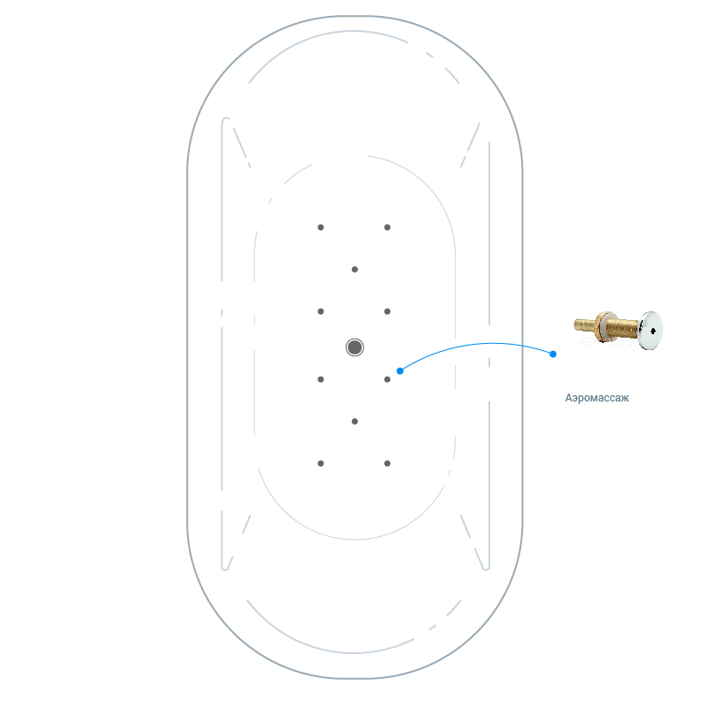 10 форсунок аэромассажа (установка на дне ванны).