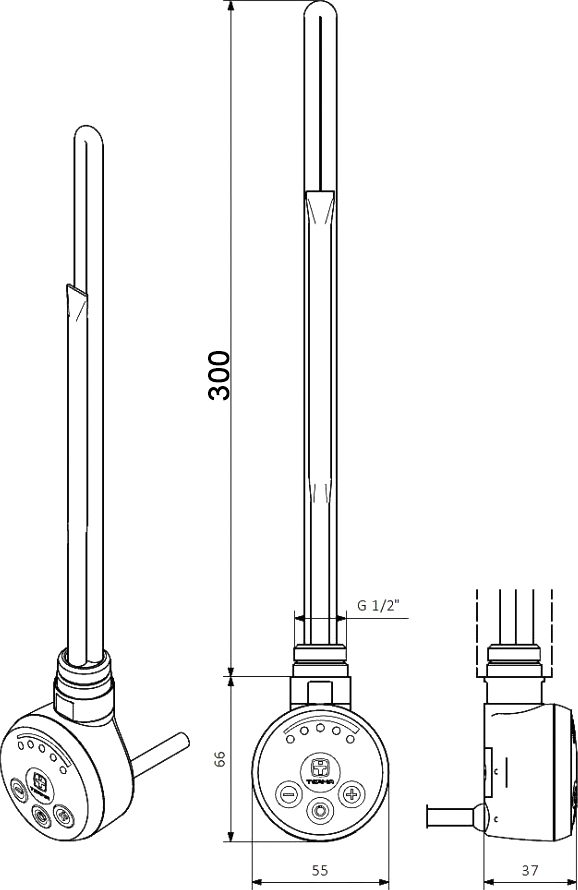 Нагревательный элемент Terma Мег 1.0 300W черный, скрытое подключение, с блоком управления
