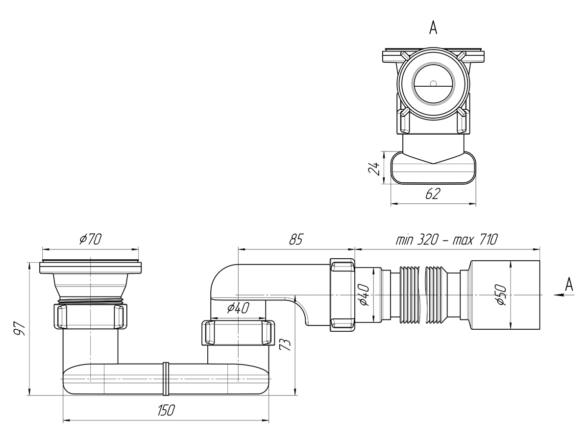 Сифон для душевого поддона Ани Пласт Е015 плоский