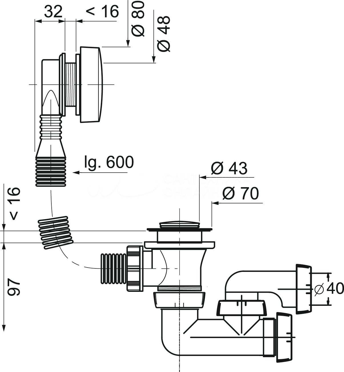 Слив-перелив п/автомат для ванны