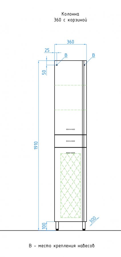 Пенал Style Line Эко Стандарт 36 белый с бельевой корзиной