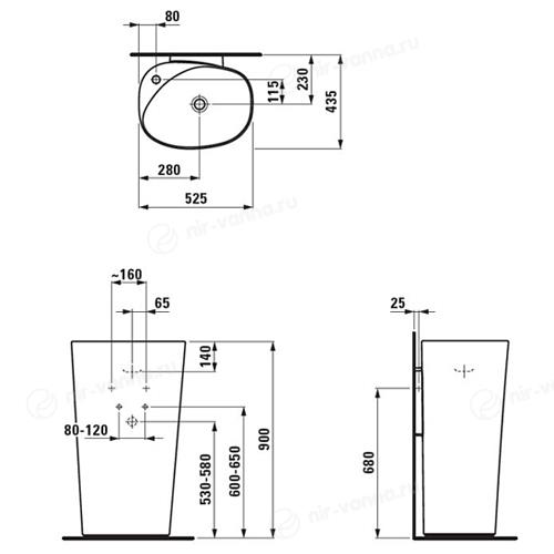 Напольная раковина Laufen Palomba 52,5*43,5 с креплением к стене