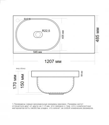 Полувстраиваемая раковина Andrea Bruks 120,7*48,5 L для установки над стиральной машиной