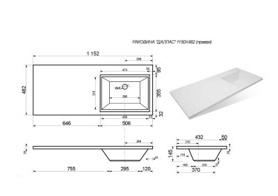 Полувстраиваемая раковина Эстет Даллас 115,2*48,2 R для установки над стиральной машиной