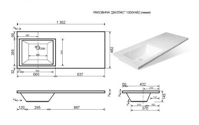 Полувстраиваемая раковина Эстет Даллас 130,2*48,2 L для установки над стиральной машиной