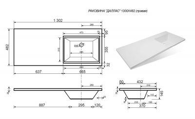 Полувстраиваемая раковина Эстет Даллас 130,2*48,2 R для установки над стиральной машиной